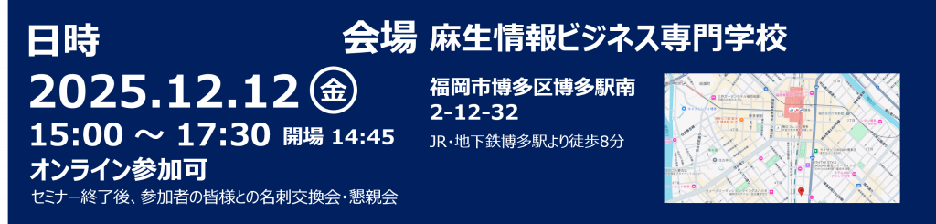 2025年12月12日(金)15:00 ~ 17:30(14:45から入室)※フォーラム終了後、任意で懇親会を予定しています。