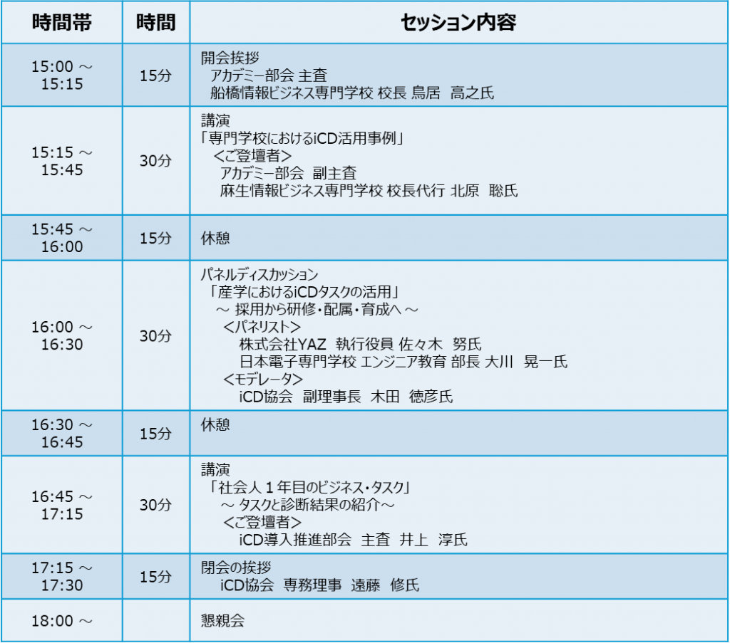 今回はリアルとオンラインのハイブリット開催とし、iCD協会員以外の企業や教育機関も参加可能ですので、皆様、奮ってご参加ください。