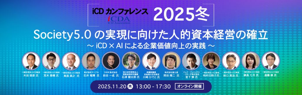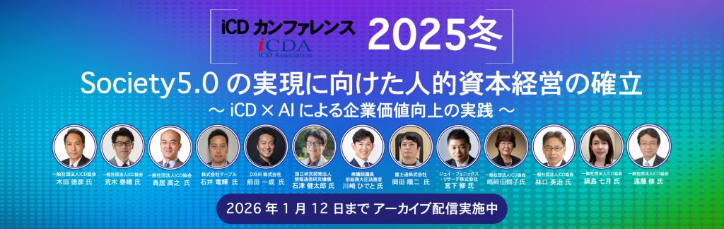 iCD協会では、Society5.0の実現に向け、人的資本経営とAI活用の最前線を探る「iCDカンファレンス2025冬」を開催します。
